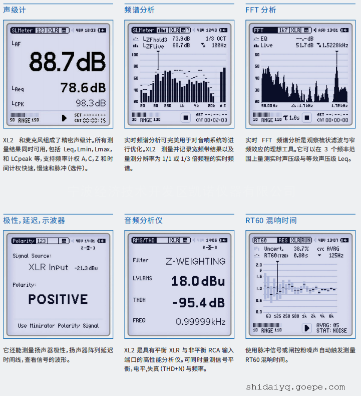 NTi多功能声学分析仪XL2不同测量软件的显示界面: