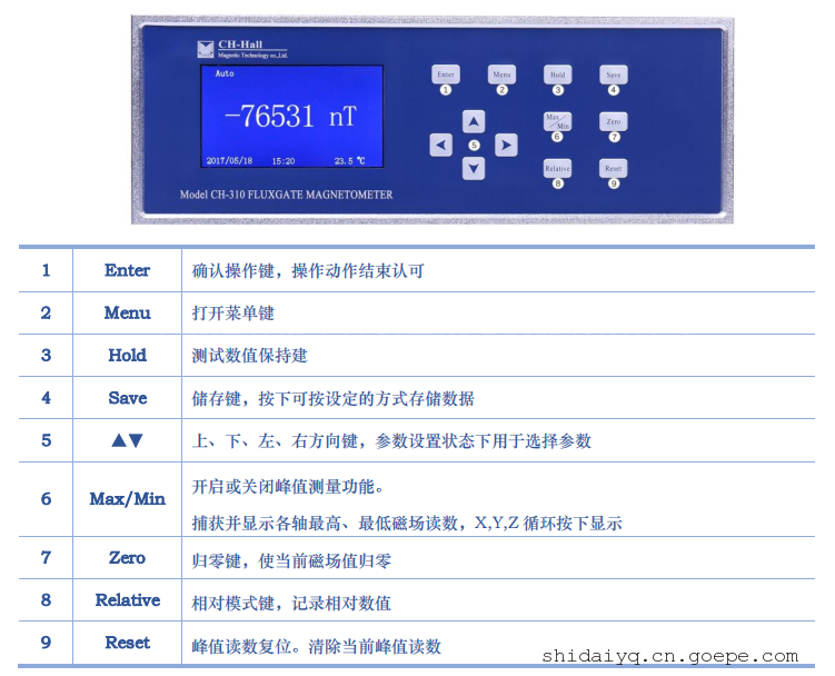 3)将清零后的高斯计探头褪出保护套放回被测磁场区域进行读值,请不要将保护套摘下,测量完毕后可将 探头缩回保护套内。请注意所使用的探头类型,不同的探头类型其测试方式与测试位置及方向都不尽相 同。