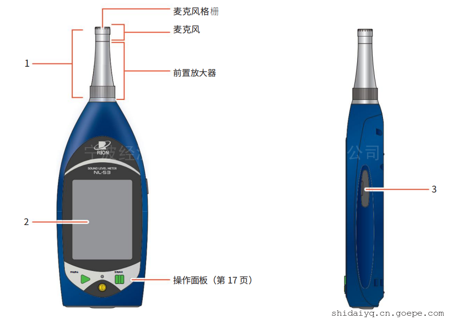3.SD卡槽 RION理音声级计NL-53、NL-43、NL-63声级计面板说明: