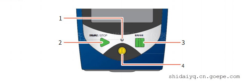 3.暂停/继续键:用于暂停屏幕显示;在测量过程中用于暂停测量;在菜单操作期间,用于返回上一屏幕。