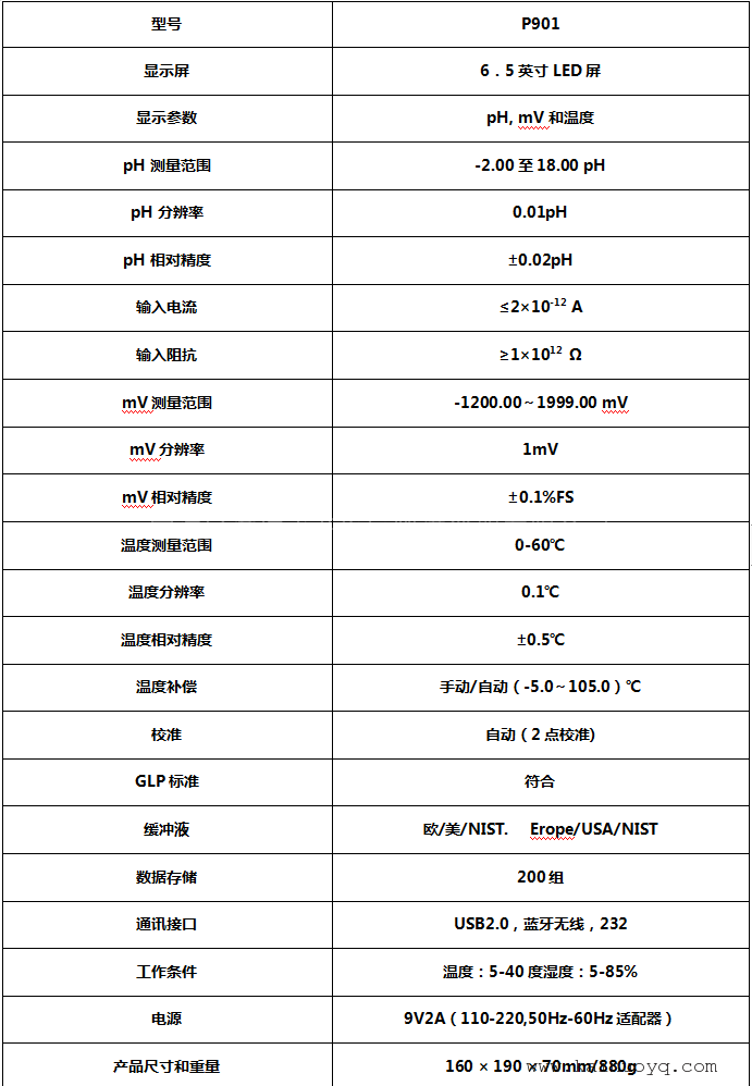 详细信息| 询价留言品牌:佑科 型号:P901 加工定制:否 类型:台式 测量范围:-2.00至18.00 pH 显示方式:LED屏 探头型式:标准 精度:±0.02pH 温度补偿范围:手动/自动 ℃ 电源电压:9V2A V 工作温度:0-60℃ ℃ 温度补偿范围:手动/自动 ℃ P901按键台式PH酸度计