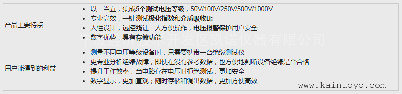 绝缘测试电压: 50 V、100 V、250 V、500 V 和 1000 V,适用于多种应用