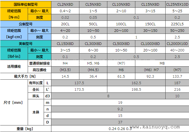CL50N~280N附带树脂手柄,CL420N附带滚花手柄。