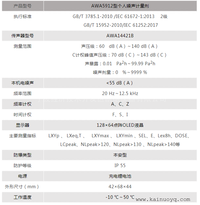 个人噪声剂量计AWA5912本安型的主要技术参数: