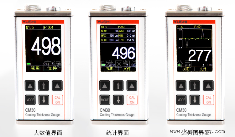 详细信息| 询价留言品牌:宇时 加工定制:否 型号:CM-30 类型:镀层 测量范围:0~3000 mm 显示方式:液晶屏 电源电压:2节1.5V V 外形尺寸:121*63*31 mm 显示方式:液晶屏 车漆涂镀层测厚仪CM-30CM30系列涂层测厚仪经过CNC精密机械加工及阳极氧化处理。仪器从机身到接插件均做防水密封处理,完全符合IP68防水防尘标准。