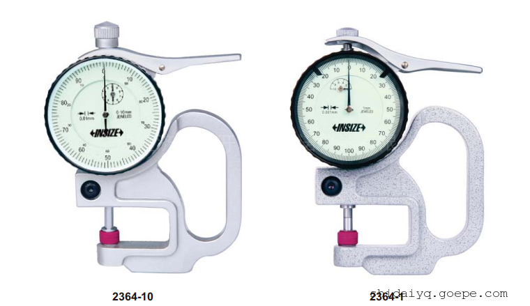 英示2366型测厚规符合JJF厚度表国家计量技术规范。类型分为A型和B型。此款2366型为指针式测厚规,另有同系列数显测厚规可选。具体型号及参数如下: