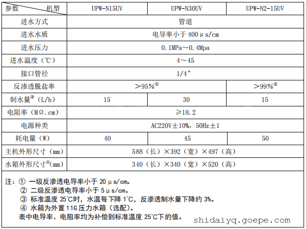 UPW-N 系列纯水机参数: UPW-N 系列纯水机特点: