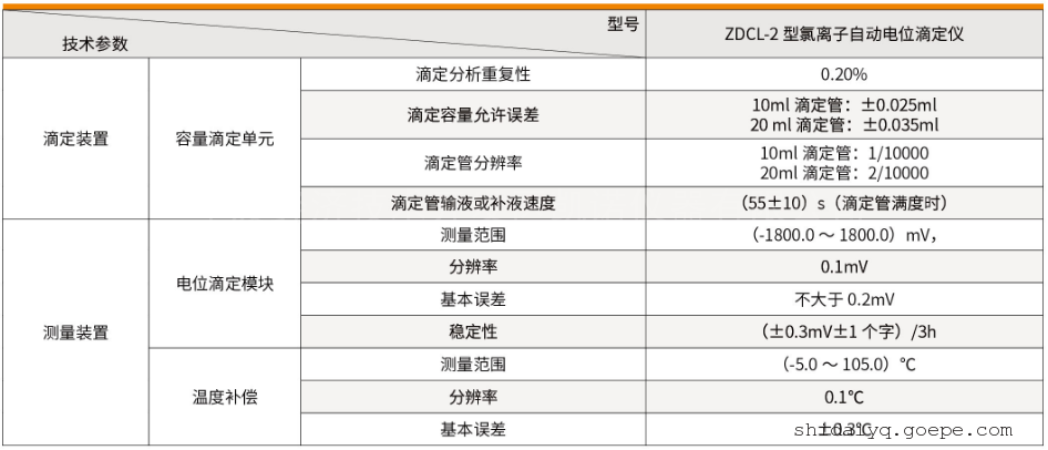 雷磁氯离子电位滴定仪ZDCL-2型主要参数: