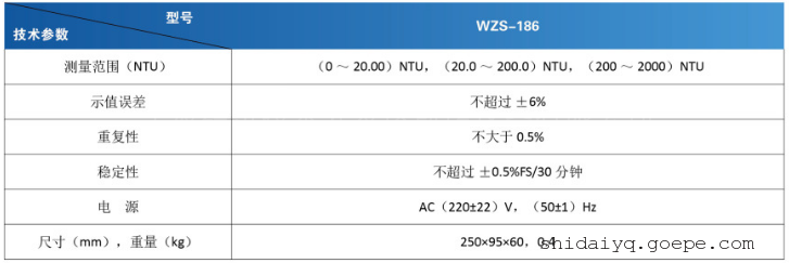 雷磁台式浊度计WZS-186型主要参数: