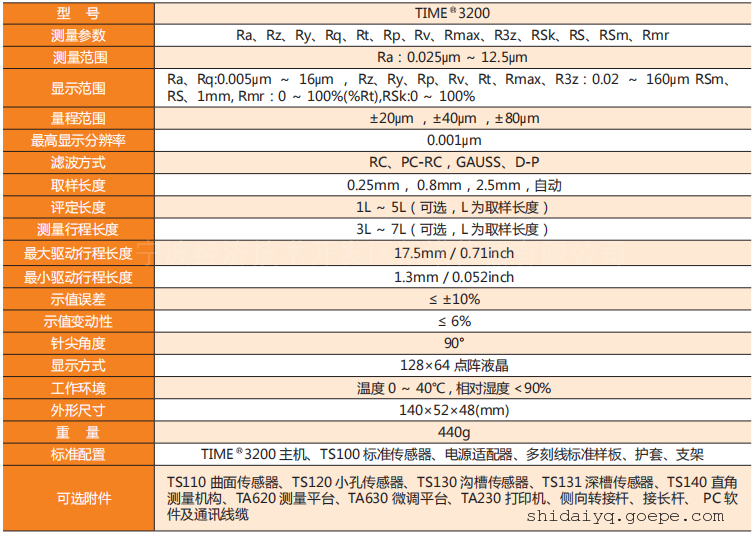 时代TIME3200型粗糙度仪参数: