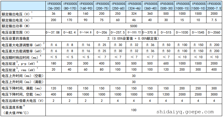 IPX5000S型宽量程可编程开关电源直流输出参数: