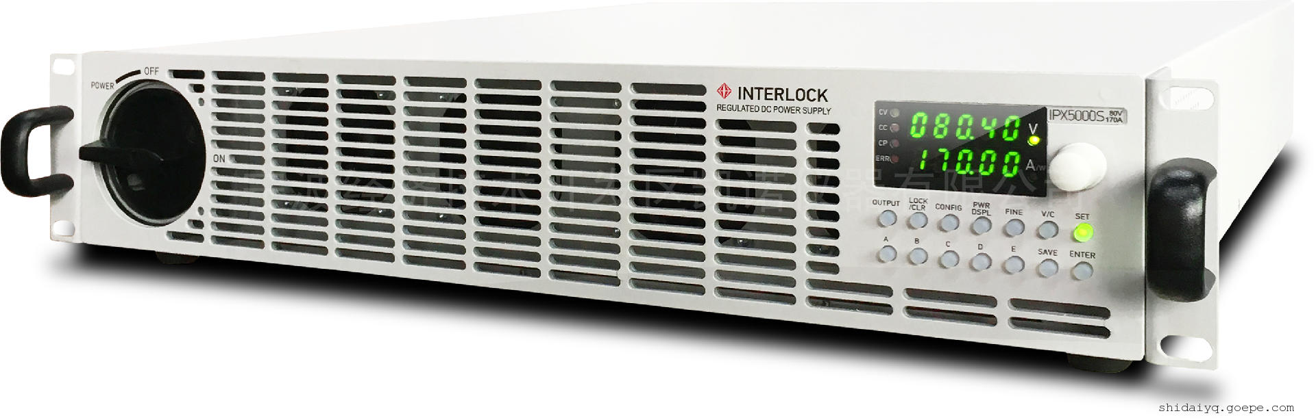 INTERLOCK英特罗克宽量程可编程开关电源IPX5000S型采用高亮度的LED显示输出电压、电流值以及电源状态。电源后面板标配RS232和RS485通讯接口,以及完备的模拟控制接口,方便用户组成需要的自动测试系统。IPX5000S型宽量程可编程开关电源可广泛应用于实验室测试、生产线产品检测以及老化测试等。
