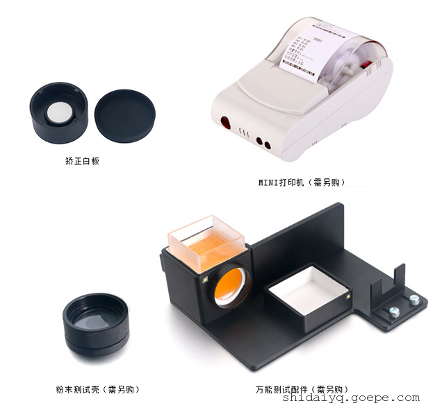3nh高品质便携式电脑色差仪NH310特点:技术规格 NH300 NH310 测量几何结构 8/d 8/d 可选择测量孔径 8mm 8mm/4mm 侦测器 硅光电二极管 硅光电二极管 测色光源 LED蓝光激发 LED蓝光激发 仪器台间差 ≤0.40ΔE*ab ≤0.40ΔE*ab 储存 100个标准 20000个样品 100个标准 20000个样品 重复性 0.07ΔE*ab 测量白色标准板30次平均值 0.06ΔE*ab 测量白色标准板30次平均值 重量 500g 500g 尺寸 205×70×100 mm 205×70×100 mm 电源 充电锂离子电池3.7V 充电锂离子电池3.7V 灯泡寿命 5年大于160万次测量 5年大于160万次测量 充电时间 约8小时-100%电量 约8小时-100%电量 充电后可测次数 8小时内可测量3000次 8小时内可测量3000次 操作温度范围 10~40℃,0~85%相对湿度(无结露) 10~40℃,0~85%相对湿度(无结露) 数据接口 USB接口 USB接口 加长口径(选配) - Φ8mm加长口径,可测凹面部位 打印机(选配) 微型热敏打印机(如下图) 微型热敏打印机(如下图)