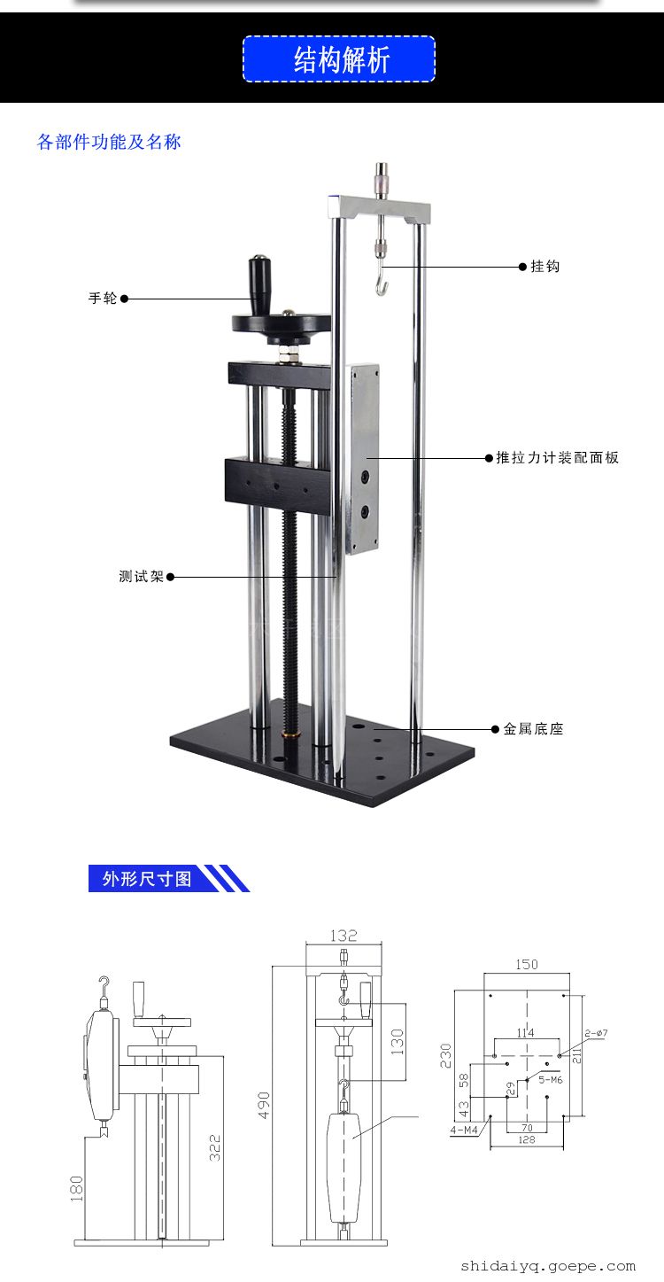 详细信息| 询价留言品牌:时代三和 加工定制:否 型号:SLJ 外形尺寸:230×150×490 mm 重量:9000 g 适用范围:数显/指针推拉力计 用途:推拉力计适配测试架 电源电压:手动 V 适用范围:数显/指针推拉力计 时代三和推拉力计螺旋拉压测试架SLJ适配我司指针推拉力计和数显推拉力计,作拉压负荷、插拔力破坏力等测试,还可加装钢直尺或数显标尺,使用者在测试时能非常清晰的观察到位移量。以上为组合展示图,测力计需另外购买。