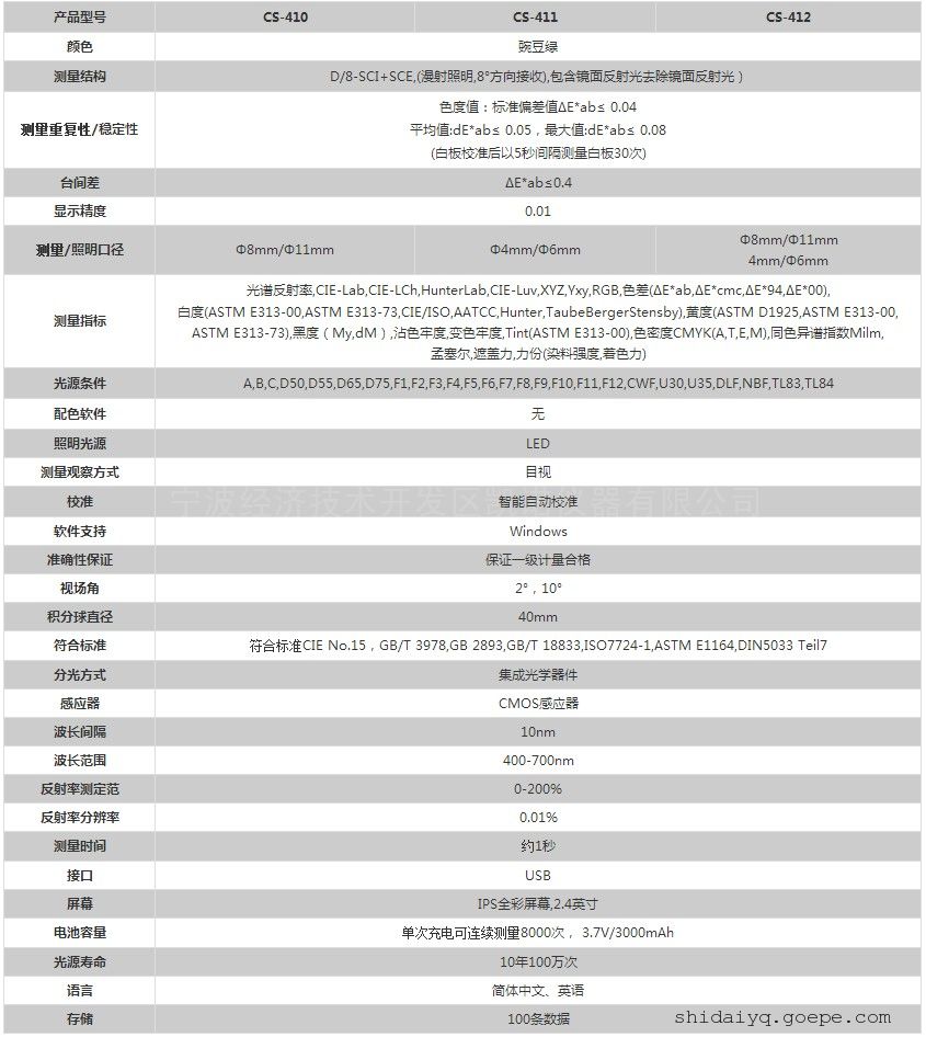 色 度 值:标准偏差ΔE*ab≤0.04 平均值ΔE*ab≤0.05;*大值ΔE*ab≤0.08 (白板校准后以5秒间隔测量白板30次)
