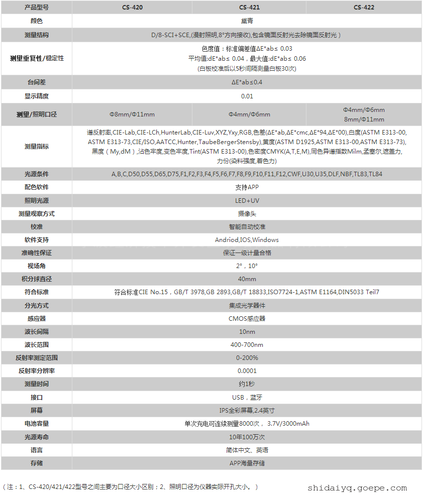 彩谱涂料分光色差仪CS-420系列技术参数: