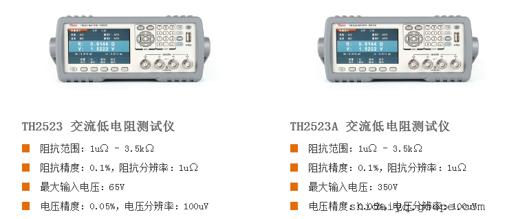 同惠TH2523型电池测试仪及TH2523A规格参数:型号 TH2523 TH2523A 显示 显示器 4.3英寸480x272 24位色TFT显示器 显示位数 R:慢速 5位,*大显示数字