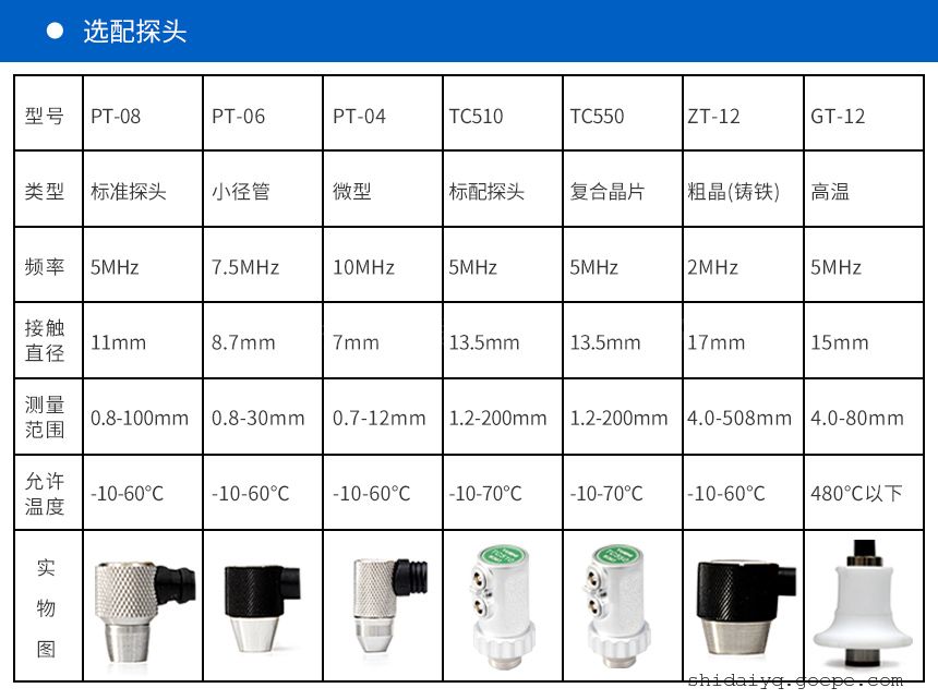 (注:不同型号探头的价格需咨询销售经理确认!)
