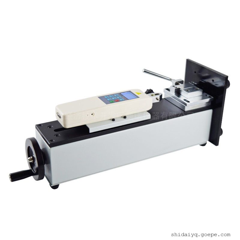 KSL-J型手动螺旋立卧两用测试架,是为NK,SH系列推拉力计配备,可组合成不同用途的试验机台,进行准确的插拔力、按压力、有破坏性实验等测试,在显示力值的同时,还可以加装标尺显示其位移量,对不同工件进行相同位移量下的对比测试。配备标尺的测试架型号为KSL-S,拉力计需另外购买,或者联系我司人员下单时配套采购。 KSL-J型手动螺旋立卧两用测试架特点: