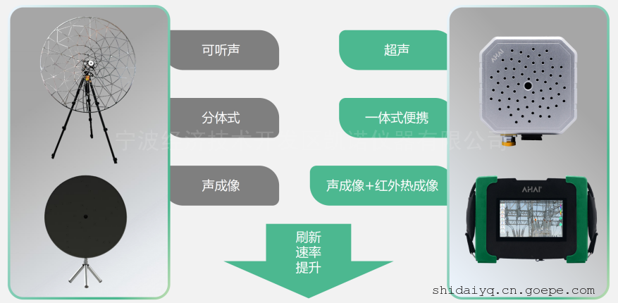 AHAI2053不仅可以用作声学成像,也可以用作热成像,具有红外热成像功能。超声模式,一体式便携相比于之前的分体式声成像仪,AHAI2053型一体式声成像仪能有效的使工作效率大幅提升。