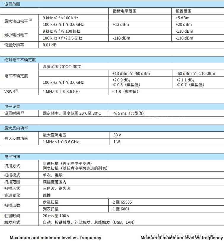 幅度精度典型值≤ 0.5 dB 输出功率-110 dBm 至+20 dBm