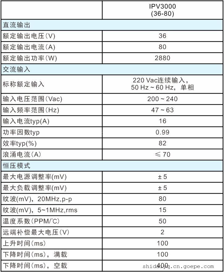 定量程可编程开关电源IPV3000型参数规格: