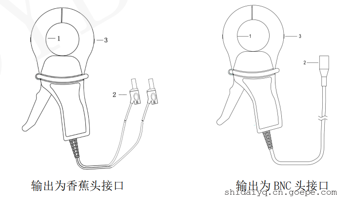 低频交流电流探头CP1000B型产品主体组成: 1. 钳口:夹住被测导线,直径 54mm