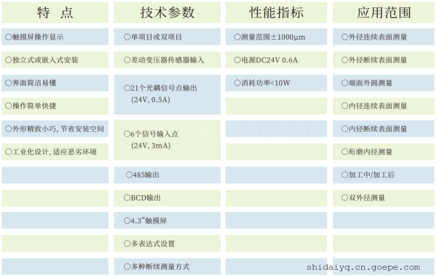 1)智能控制测量:可在标准范围内进行各种演算和修正,或由机床控制自动完成加工尺寸修正。在加工中或加工后测量过程中,显示各种测量结果及判断点状态,同时发出信号控制机床动作。