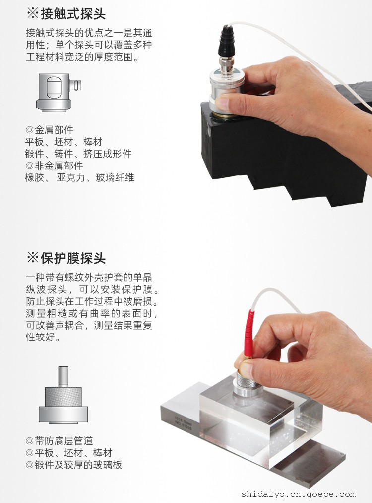 PM5 Gen2宇时超声波测厚仪可搭配使用延迟线探头、接触式探头、保护膜探头、笔式探头、水浸探头和高温探头等,探头频率范围在0.5-20MHz,根据需求可定制探头和测量夹具等装置,满足多种测量需求。