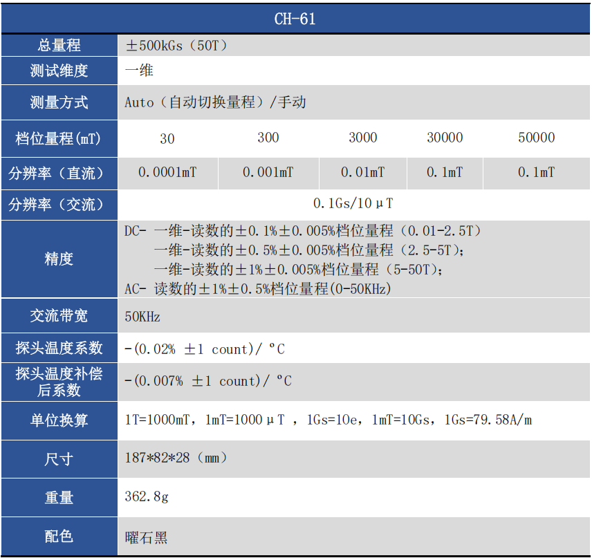 触摸屏一维高斯计CH-61型参数规格: 触摸屏一维高斯计CH-61型详细功能介绍: